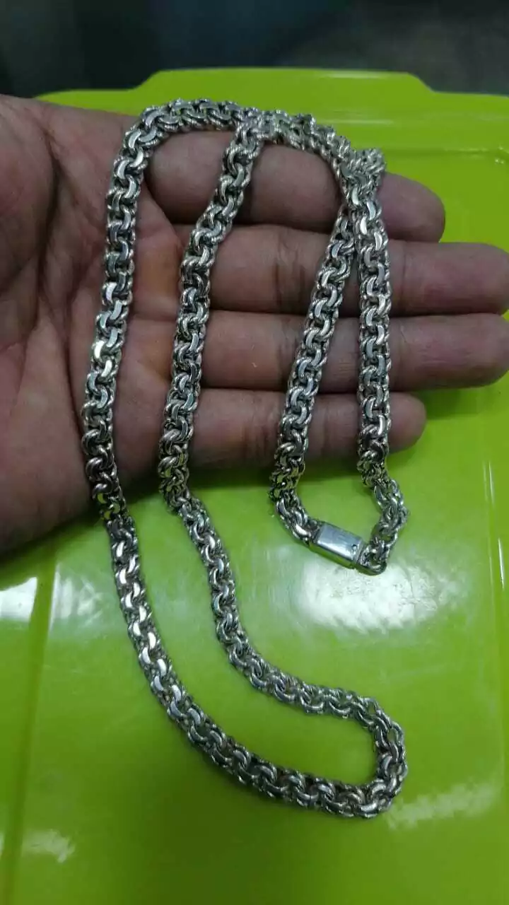 Una cadena tejida china de plata es la elección perfecta, esta pza tiene un peso de 80 gramos y 70 cm de largo . Esta cadena es una obra maestra de la artesanía, con una belleza y un brillo que no se pueden encontrar en ninguna otra joya.