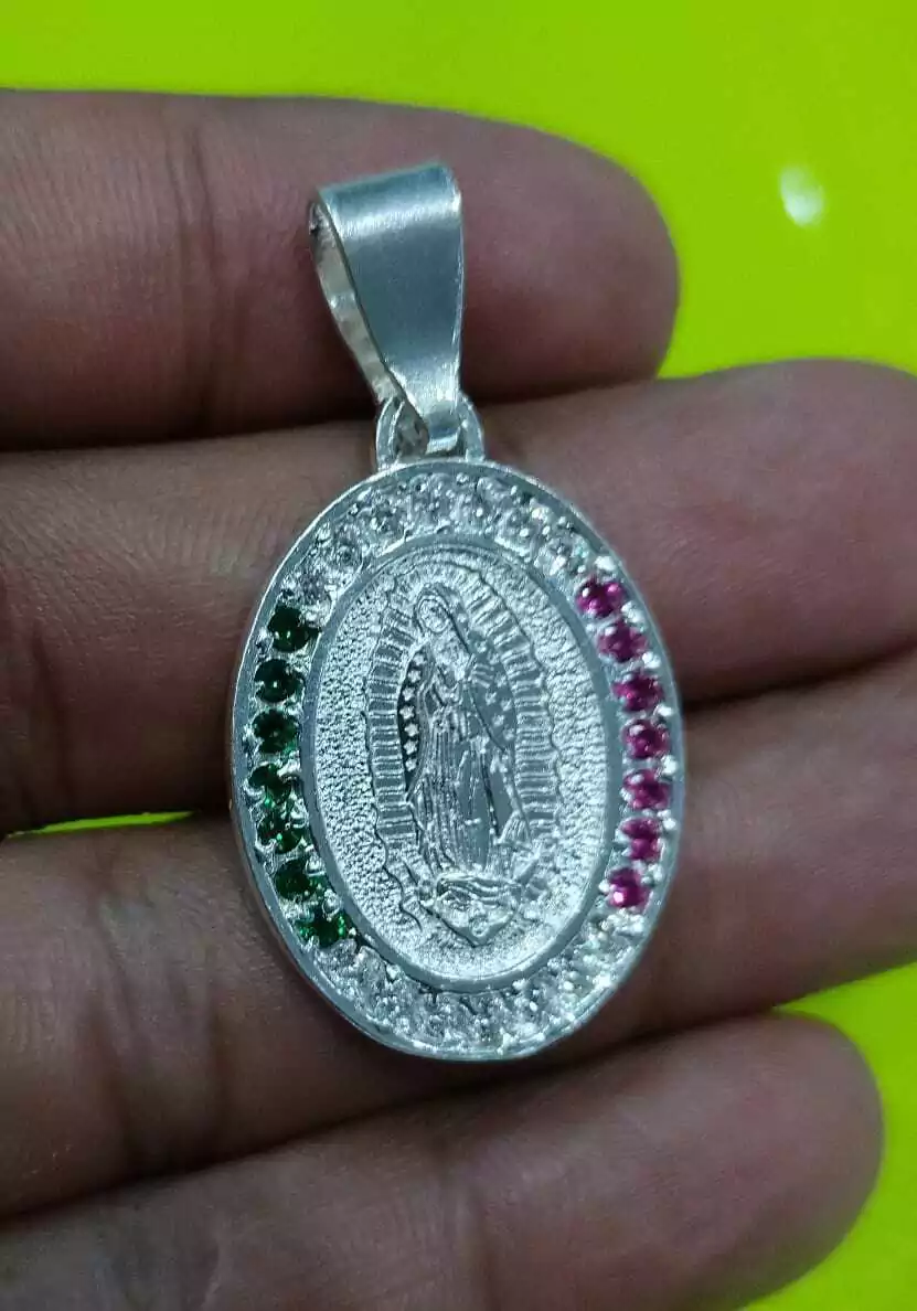 Detalles meticulosos: La imagen de la Virgen de Guadalupe está finamente elaborada y con incrustaciones de zirconias de alta calidad.